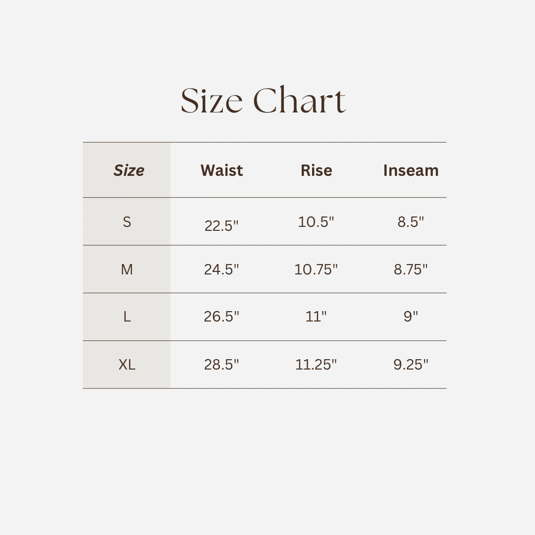 Soft ribbed biker shorts in a stretchy, comfortable fabric with an elastic waistband and mid-thigh length, featuring a high-rise fit for added support.