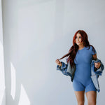 Slim-fitting bodysuit in a stretchy ribbed-knit fabric, featuring a sleeveless design, a crew neckline, and a banded hem.