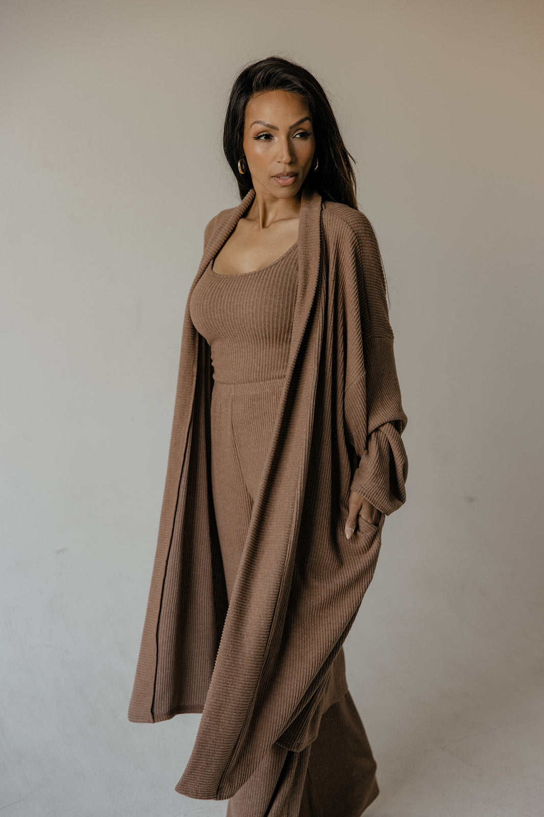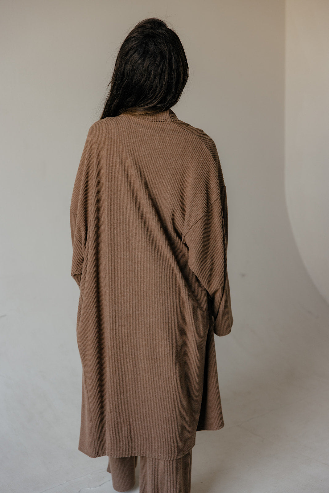 Crafted from plush sweater-knit fabric, it boasts an open front and flowing fit with long sleeves. The ribbed texture keeps it chic while ensuring you stay warm and comfy.