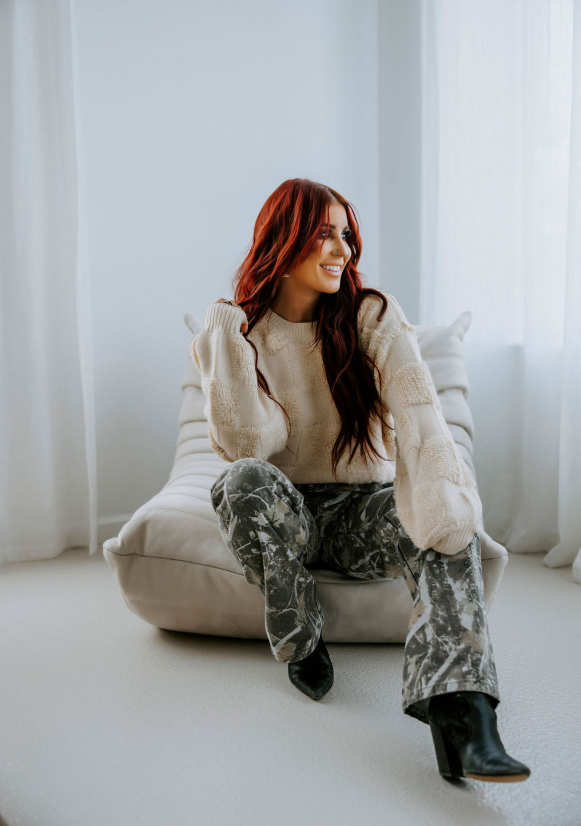 Cozy knit sweater with a checkered pattern and a mix of textured panels for added dimension. Designed with a relaxed fit, a classic crew neckline, and ribbed cuffs and hem for a comfortable, easygoing feel.